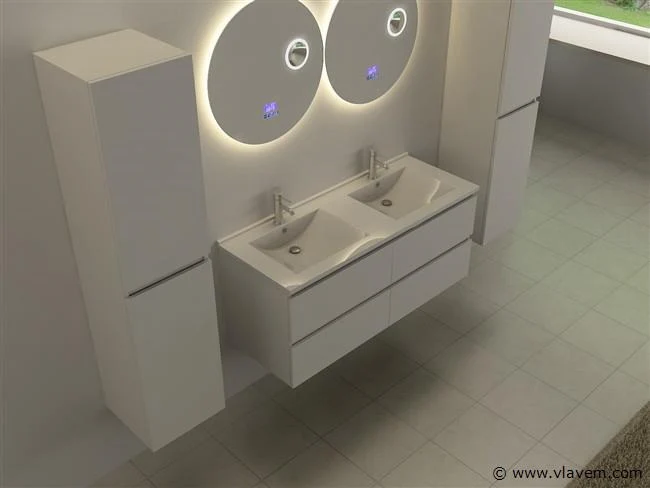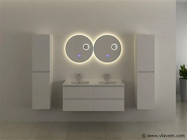 Aantal: 1 Merk: Vonato Productnaam: Badkamerspiegel Type: RNLM-60 Model: Ronde spiegel met LED verlichting Afmetingen: Ø60 cm, dikte: 0,5 cm Kleur: LED verlichting in 3 kleuren; geel, blauw en wit Voorzien van: Touch bediening via digitaal display – LED verlichting in 3 kleuren, dimbaar – Bluetooth & speakers – Digitale klok – Digitale temperatuurmeter – 220 volt aansluiting – Anti-fog technologie door verwarming in de spiegel – Vergrootglas (vergroot 3x) in de spiegel Ø10 cm - Kopervrije spiegel - 1,5mm explosieveilige laag aan de achterkant. Conditie: Nieuw Ter waarde van: € 395,-