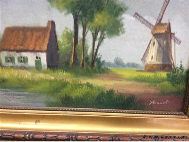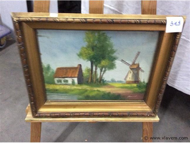 Schilderij boerderij met molen
