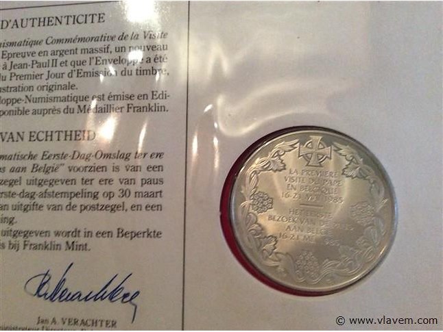 Muntstuk joannes paulus ii bezoek belgië 1985