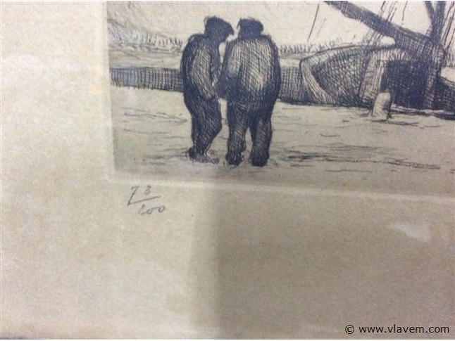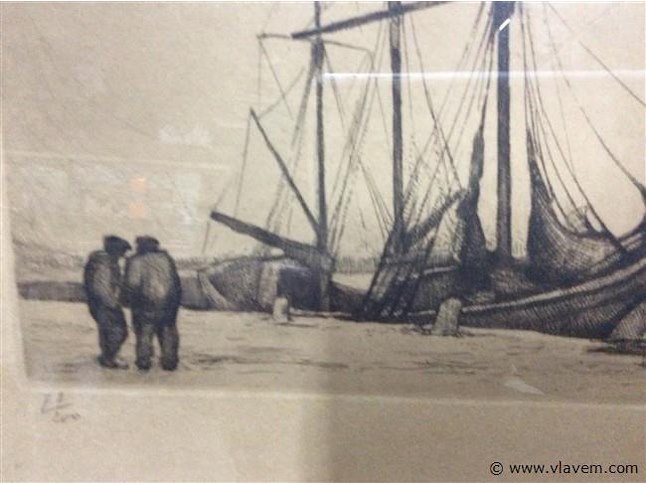Ets : zeilschip genummerd en getekend