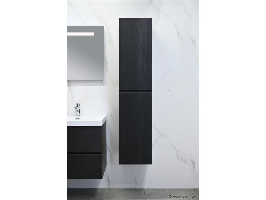 Aantal:1 Merk:Vonato Productnaam:Badkamermeubel 2 persoons Type:9015 Model:3-delig met dubbele wasbak Kleur:Donker hout decor zwart, witte wastafel Materiaal:Melamine, kunstmarmeren wastafel Afmeting:3-delige set: 1 * Wastafelmeubel - 1200x450x600mm 1 * Zijkast - 1500x350x350mm 1 * Spiegel - 1200x600mm Voorzien van:Kranen inclusief pop-up afvoer – 4 stevige metalen lades - Softclose lade systeem - LED spiegel met anti-fog systeem - Voorgemonteerde zijkast en wastafelmeubel Conditie:Nieuw