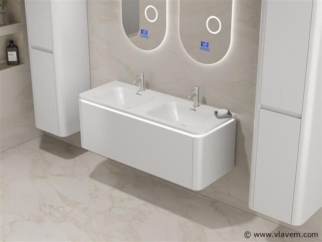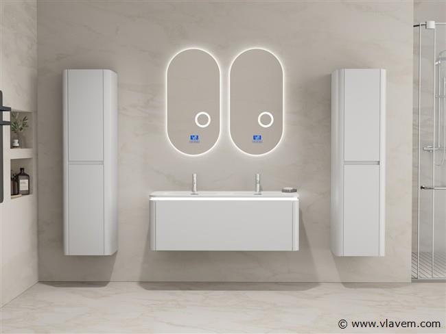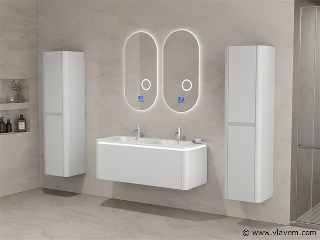 Aantal:1 Merk:Vonato Type:BOSTON1202-WH Model:Badkamermeubel 2 persoons 120 cm Kranen:Incl. 2 kranen Materiaal:Melamine en MDF Afmetingen Complete set: 1 * Wastafelmeubel - 1200x455x400mm 1 * Dubbele wasbak - 1205x460x190mm 2 * Zijkast - 1500x350x350mm 2 * Spiegel - 450x900mm Kleur:Wit Voorzien van:LED verlichting in onderkast - 2 kranen inclusief pop-up afvoer – 1 lade met 2 opbergvakken - Softclose lade systeem – 2 LED spiegels met anti-fog systeem - Voorgemonteerde zijkasten en wastafelmeubel Conditie:Nieuw
