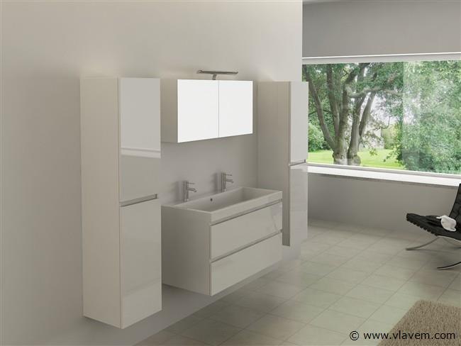 Aantal:1 Merk:Vonato Productnaam:Badkamermeubel Type:HAVIKLUXWM-2-100 Model:2-persoons badkamermeubel 100 cm Kranen:Inclusief kraan Materiaal: 18mm MFC Afmetingen 2 persoons set: 1 x Wastafelmeubel - 1000x470x520mm 1 x wasbak – 1000x475x160mm (rand 3 cm) 2 x Zijkasten - 1500x350x350mm 1 x Spiegelkast - 1000x180x450mm Kleur:Hoogglans wit Voorzien van: Kranen inclusief pop-up afvoer – 2 lades - Softclose systeem op deurtjes en lades - Giethars wasbakken – LED verlichting boven de spiegel – Spiegelkast met 2 deurtjes en 1 plank - Voorgemonteerde zijkasten en wastafelmeubel. Conditie: Nieuw