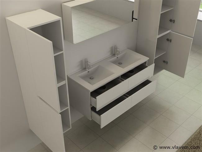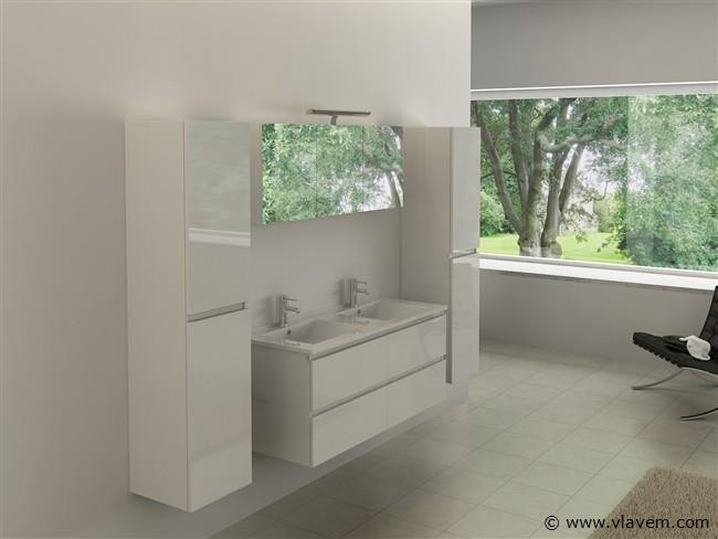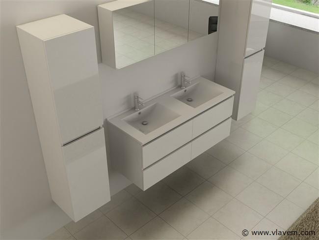Aantal:1 Merk:Vonato Productnaam:Badkamermeubel Type:HAVIKLUXWM-2-120 Model:2-persoons badkamermeubel 120 cm Kranen:Inclusief 2 kranen Materiaal: 18 mm MFC Afmetingen 2 persoons set: 1 x Wastafelmeubel - 1200x455x520mm 1 x Dubbele wasbak – 1200x460x160mm (rand 2 cm) 2 x Zijkasten - 1500x350x350mm 1 x Spiegelkast - 1200x450x180mm Kleur:Hoogglans wit Voorzien van: Kranen inclusief pop-up afvoer – 4 lades - Softclose systeem op deurtjes en lades - Giethars wasbakken – LED verlichting boven de spiegel – Spiegelkast met 3 deurtjes en 2 planken - Voorgemonteerde zijkasten en wastafelmeubel. Conditie: Nieuw