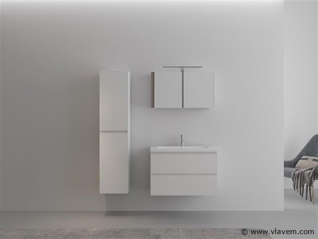 Aantal:1 Merk:Vonato Productnaam:Badkamermeubel Type:HAVIKLUXWM-2-80 Model:1-persoons badkamermeubel 80 cm Kranen:Inclusief kraan Materiaal:18 mm MFC Afmetingen 2 persoons set: 1 x Wastafelmeubel - 800x460x520mm 1 x wasbak – 800x460x160mm (rand 3 cm) 1 x Zijkast - 1500x350x350mm 1 x Spiegelkast - 800x450x180mm Kleur:Hoogglans wit Voorzien van: Kranen inclusief pop-up afvoer – 2 lades - Softclose systeem op deurtjes en lades - Giethars wasbakken – LED verlichting boven de spiegel – Spiegelkast met 2 deurtjes en 1 plank - Voorgemonteerde zijkast en wastafelmeubel. Conditie: Nieuw