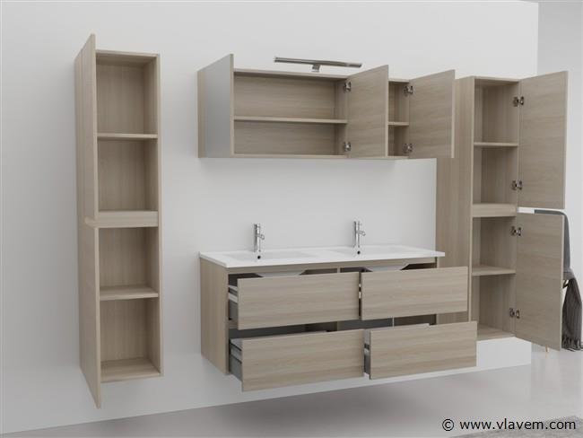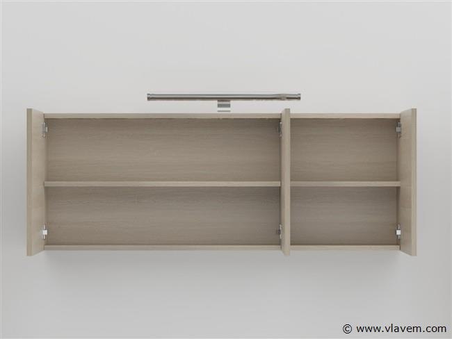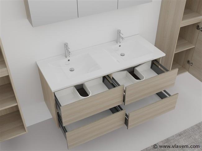 Aantal:1 Merk:Vonato Productnaam:Badkamermeubel Type:HAVIKLUXWM-2-120-H074 Model:2-persoons badkamermeubel 120 cm Kranen:Inclusief 2 kranen Materiaal: 18 mm MFC Afmetingen 2 persoons set: 1 x Wastafelmeubel - 1200x455x520mm 1 x Dubbele wasbak – 1200x460x160mm (rand 2 cm) 2 x Zijkasten - 1500x350x350mm 1 x Spiegelkast - 1200x450x180mm Kleur:Licht hout decor Voorzien van: Kranen inclusief pop-up afvoer – 4 lades - Softclose systeem op deurtjes en lades - Giethars wasbakken – LED verlichting boven de spiegel – Spiegelkast met 3 deurtjes en 2 planken - Voorgemonteerde zijkasten en wastafelmeubel. Conditie: Nieuw