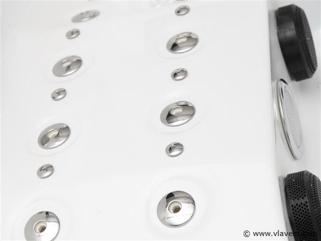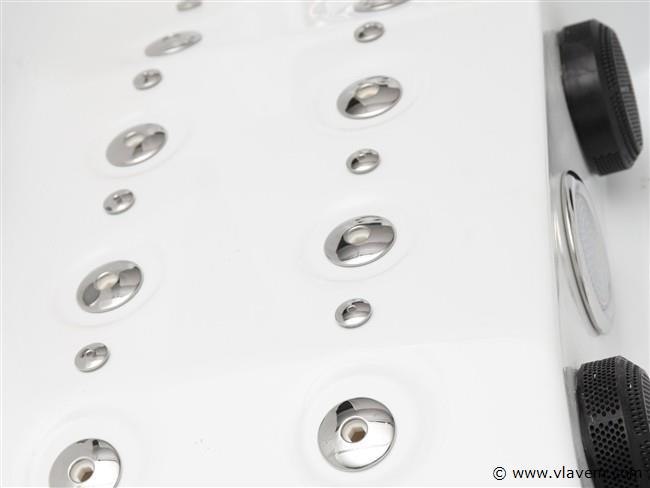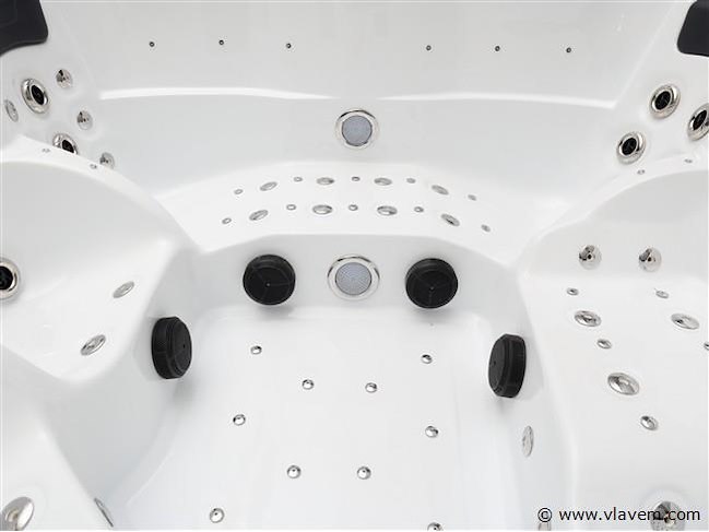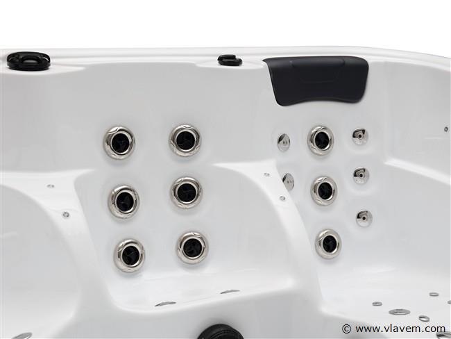 Aantal:1 Merk:Vonato Productnaam:Outdoor Spa / Jacuzzi Type:HT2021-2BED-WHRE Model:Vrijstaand Aantal personen:5 persoons: 3 ligplaatsen, 2 zitplaatsen Kleur:Wit bad met mahonie rode zijkant Afmeting:2080x2080x890mm Gewicht:359 KG Inhoud:1200 Liter Frame:RVS Jets: Totaal 91 jets, waarvan 66 waterjets van verschillende grootte en 25 airjets. Alle rugleuningen zijn voorzien van waterjets, waaronder roterende jets. Pompen: 2 Waterpompen van 2.2 kW - 1 Luchtpomp van 700 W - 1 Filterpomp 370 W Heater:3 kW Heater om het water op temperatuur te houden Verlichting:16 stuks LED onderwaterverlichting - 2 stuks grote bodemverlichting (verandert van kleur) Vermogen:Standaard 220V, dit kan omgezet worden naar 380V. Totaal vermogen 8850W Voorzien van:Zwarte cover (wordt gratis meegeleverd)- Radio - 2 speakers - Bluetooth - Isolatie - 4 Hoofdkussens - Ozone desinfectie - Aansluitingen zijn vrij bereikbaar en de motoren werken op 220V (om te zetten naar 380V). Garantie:1 jaar Conditie: Nieuw Ter waarde van: € 13.495,00