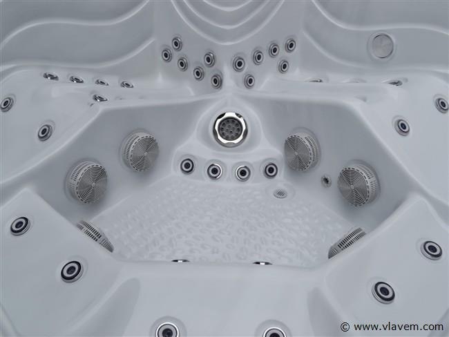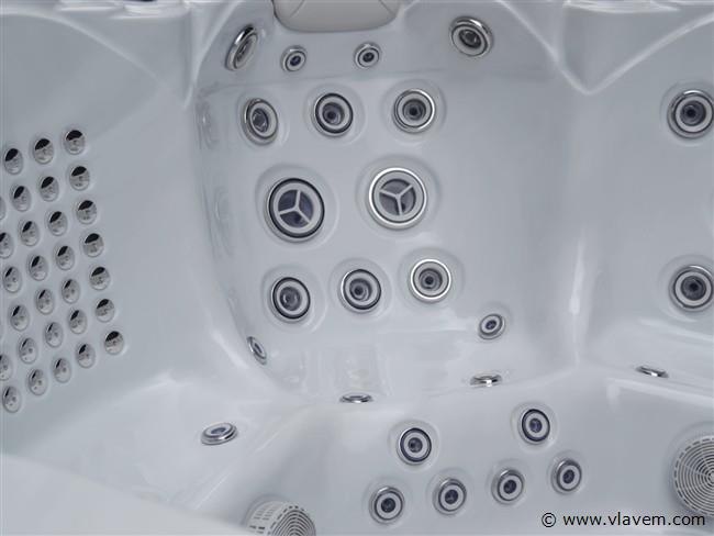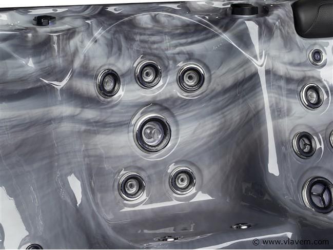 Aantal: 1 Merk: Vonato Productnaam: Outdoor Spa / Jacuzzi met Waterjets Type: PF SPA 86 Model: Vrijstaand Aantal personen: 5 persoons bad Afmeting: 2200x2200x900mm Kleur: Grijs bad met grijze skirt Gewicht: 428KG Inhoud: 1150 Liter Frame: RVS Besturing: Balboa spa pack BP6013G2 3kW + SpaTouch 2T Aantal jets: 139 massagejets Pomp: Circulatiepomp : WTC50M, Massagepomp: 3 x LP300 Vermogen: Totaal vermogen 10,5 kW, 32A. 240 V, 50 HZ Media apparatuur: 2x Aquatic AV speakers, Bluetooth & WIFI Verlichting: 11x onderwaterverlichting, 2x spa spotlight, 4x hoekverlichting, 3x LED fontein Heater: Balboa Heater 3KW Voorzien van: Balboa WiFi - Waterval & 3 LED fonteintjes – Ozonator – 3 hoofdkussens – Drain – 2x Waterverdeler – 2x Lucht controller - 1 filter - Thermo cover – 2 Speakers – Isolatie – Trapje – Muziek luisteren via Bluetooth Conditie: Nieuw Ter waarde van:€14.995,00