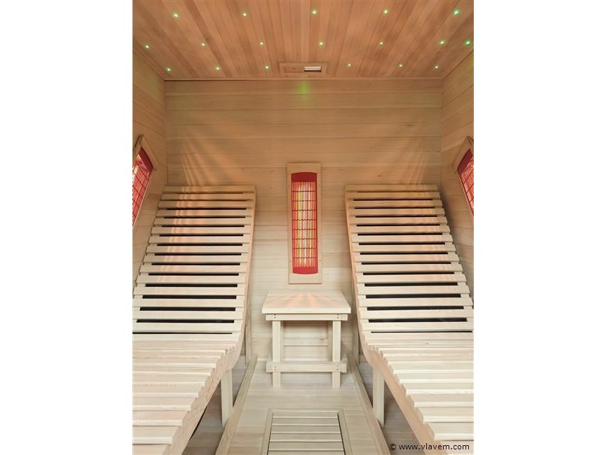 Aantal:1 Merk:Vonato Productnaam:Sauna Type:SMI-B202 Model:Infraroodkachel - rechthoekig - Tweepersoons Elec: 6Kw en 220 Volt Afmeting:1800x1800x1900mm Verwarming:Infraroodverwarming - Verwarmde giethars platen die evenredig warmte afgeven binnen de sauna Voorzien van:Helder veiligheidsglas (8mm) - Ventilatierooster - Control Panel met USB aansluiting en Bluetooth - Speakers - 220V - Plafondverlichting - Houten deurhendel - 2 ligbedden Conditie: Nieuw Ter waarde van: € 4.795,00
