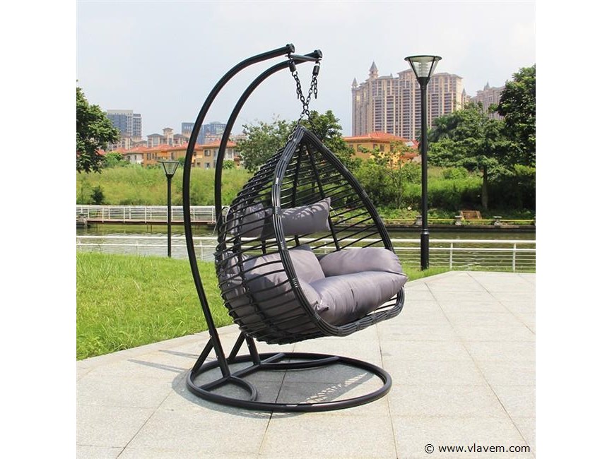 Aantal: 1 Merk:Vonato Productnaam:hangstoel Type: SWING-81-D Kleur:Zwart frame / grijze kussens Model: Hangstoel Afmetingen: basket: W135*H125*D78CM pole: H197CM Base: 105CM Conditie: Nieuw