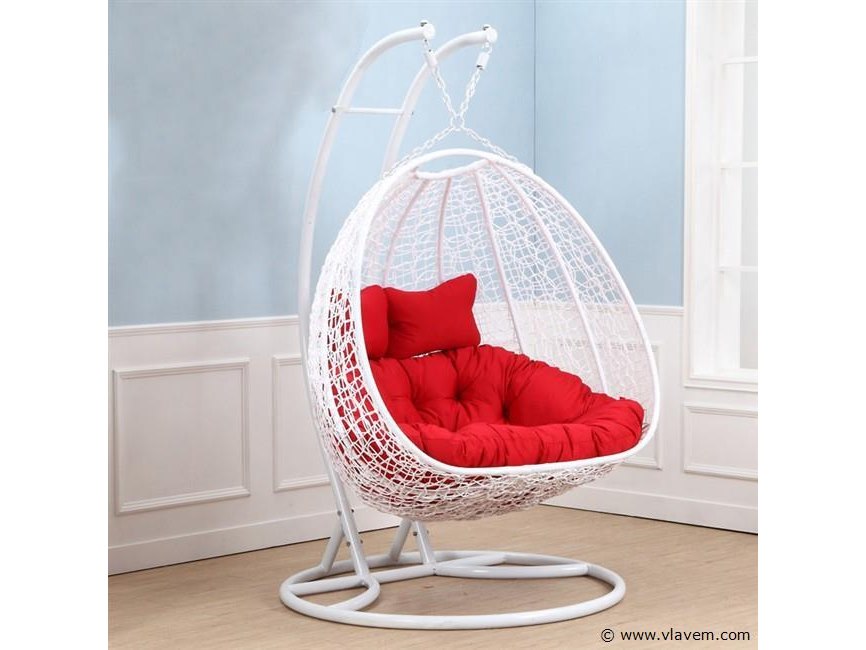 Aantal: 1 Merk: Vonato Productnaam: hangstoel Type: SWING-89-D Kleur: Wit frame / rode kussens Model: Hangstoel Afmetingen: basket: W130*H120*D75CM pole: H200CM Base: 120CM Conditie: Nieuw